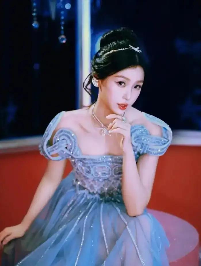 蓝色超大珠宝戴在她脖子上,衬得整个人都是发光的。