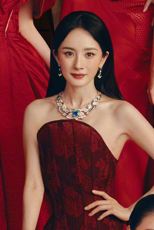 高级的混血感长相,与中式的那种古典韵味的高定礼服形成很大的反差,美得有点让人窒息了。