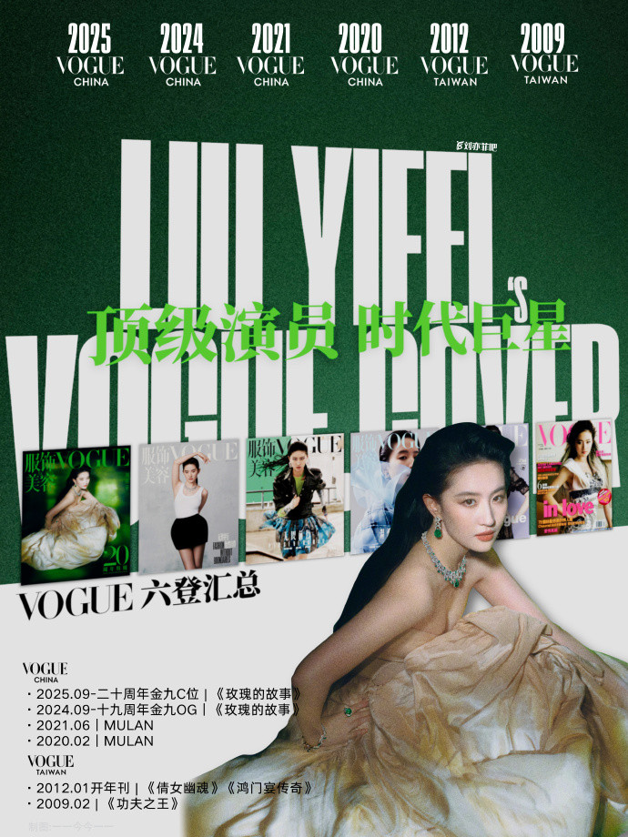 而且这两年刘亦菲的每部作品播出即是爆款剧,她能在封面上最中心,也是意料之中的事。