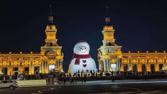 夜晚的网红大雪人别有韵味。(图片由受访者提供)治愈内核:一抹温暖人心的冬日情怀