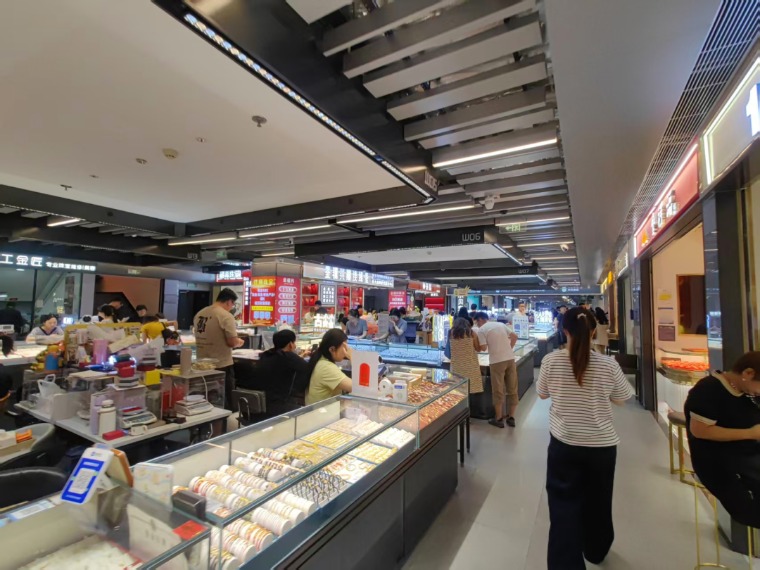 (深圳水贝市场,专门出售低克重金饰的柜台。吴家明/摄)