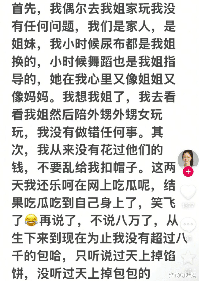 苗艺博忍无可忍发文回应,称偶尔探访姐姐实属正常,坚称亲属间互动理所应当,并着重澄清从未使用过姐姐姐夫任何资金。