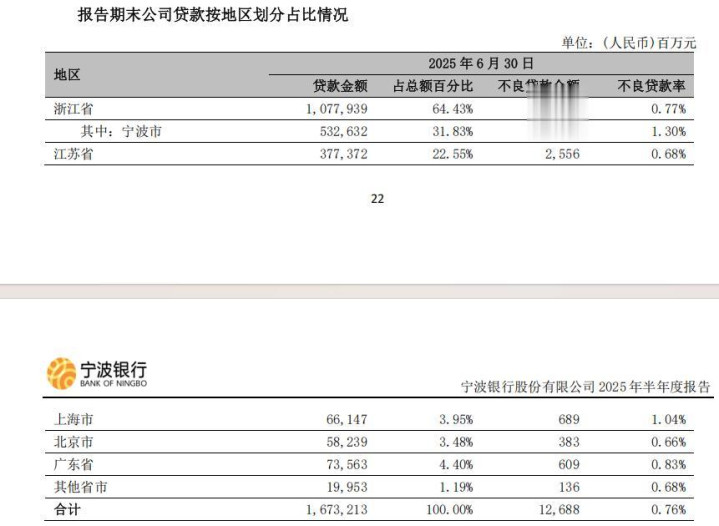 在“神仙打架”的背景下,宁波银行截至 2025 年 6 月末,在浙江和江苏贷款余额分别占全行贷款总额的 64.43%和22.55%,无论贷款余额还是占比,均较2024年同期大幅增加,“捡漏”能力一流。